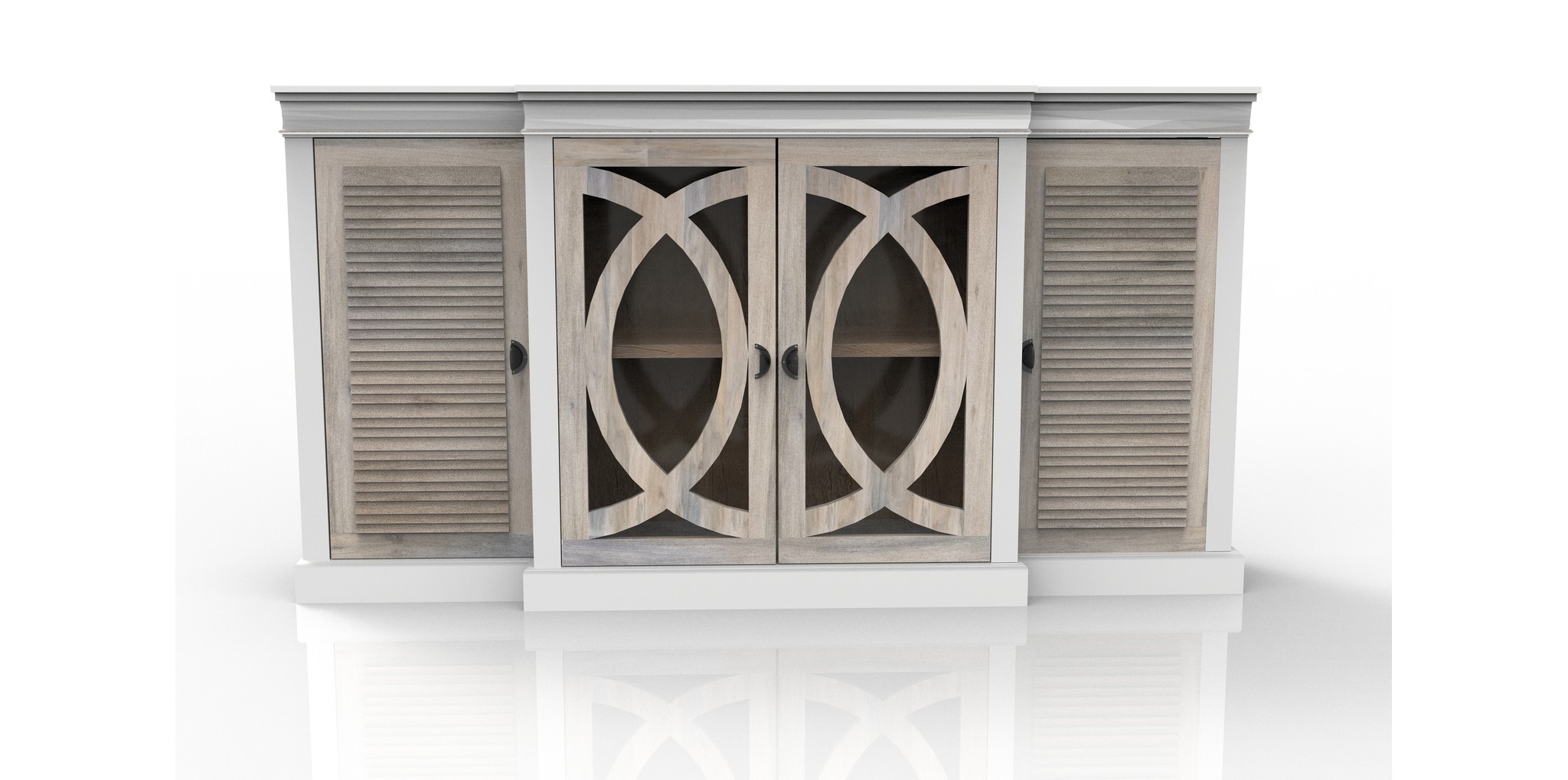The Coastal 4 Door Sideboard is equipped with sturdy metal hinges for durability and smooth operation, allowing for easy access to your belongings. Its elegant design makes it a versatile addition to various interior styles, from coastal chic to modern elegance.