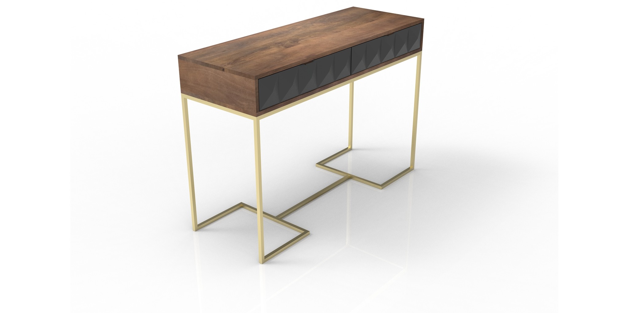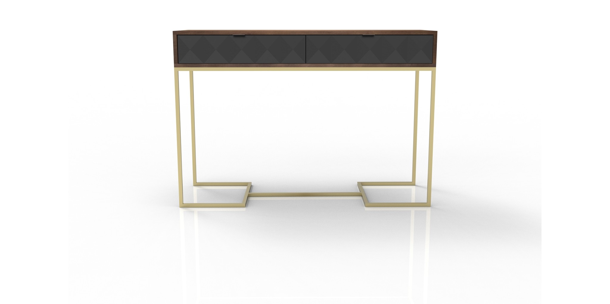 The elegant brass powder-coated metal legs not only enhance the desk's aesthetic appeal but also provide stability and durability. This combination of premium materials ensures that the Kyoto 2 Drawer Desk will be a lasting addition to your home office.