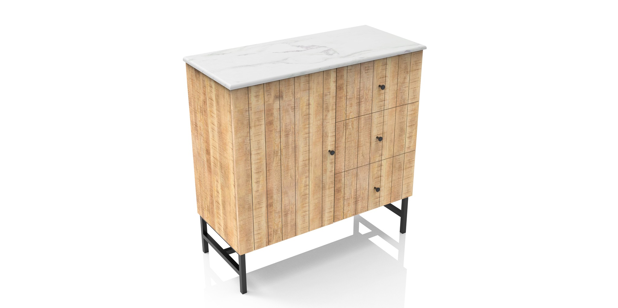 Whether you're looking to enhance your living space or need a practical storage solution, the Nova 1 Door 3 Drawer Cabinet combines style and functionality. Its sturdy construction ensures durability, while the harmonious blend of natural wood and marble creates a sophisticated look that complements a variety of interior styles.